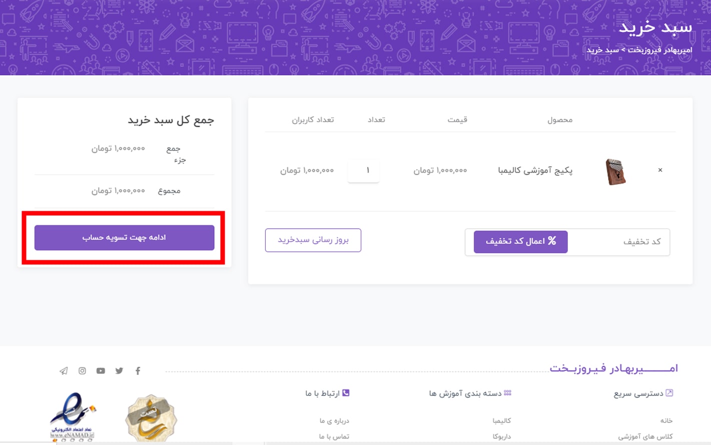 5) روی دکمه ی “ادامه جهت تسویه حساب” کلیک کنید.